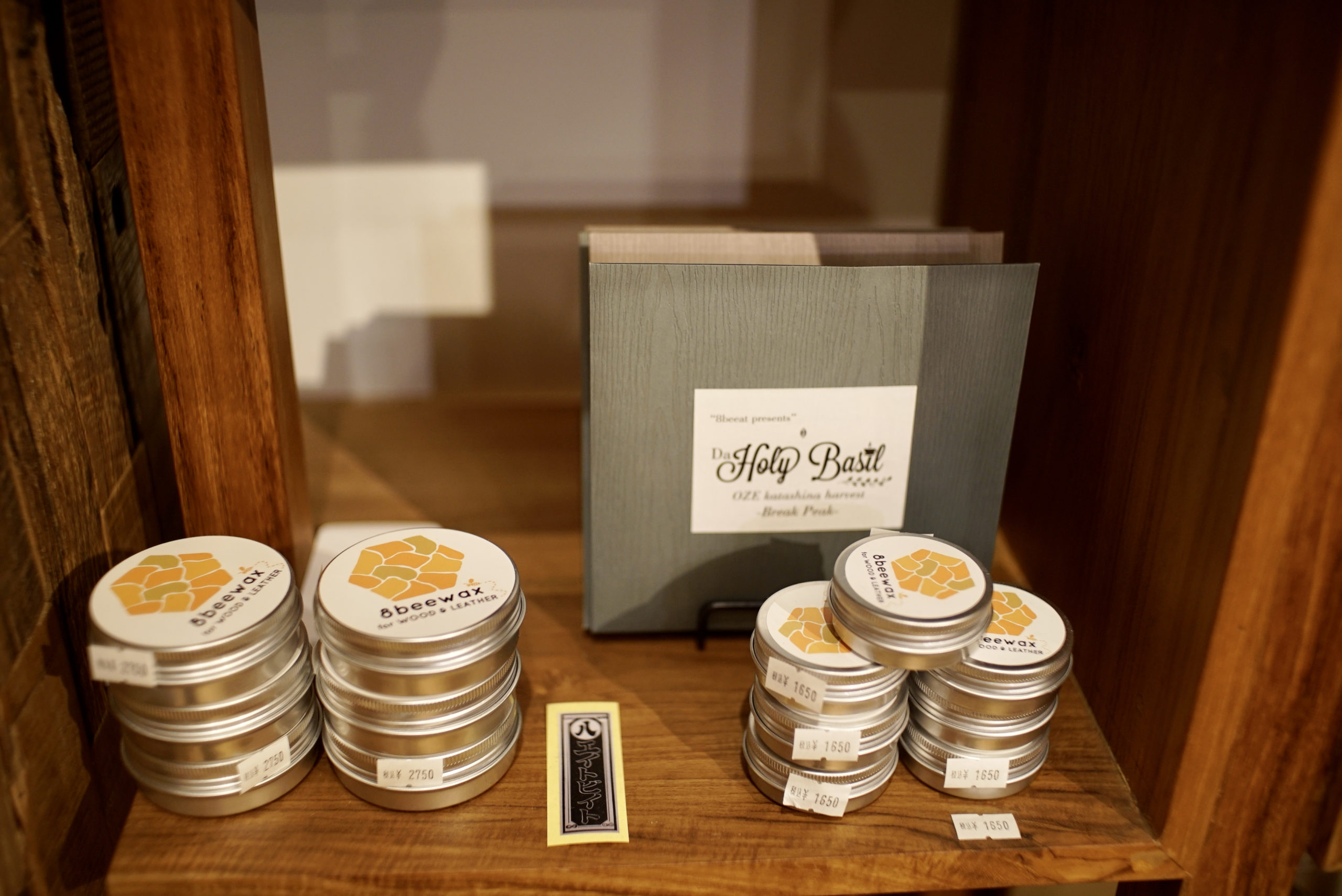 彼がつくる、ホリーバジル(お茶)も蜜蝋ワックス(木製家具や革製品のメンテナンスに)もおすすめです
